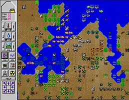 GOD GAMES are a subset of strategy games in which the player manages an entire civilization instead of individual characters. The evolution of the civilization is represented onscreen as the player tweaks various settings, ranging from geography to economics, religion, and war. Usually the player sees the world as a god would-- looking down on it from above. The genre includes such standards as Populous together with Maxis's "sim" games such as SimLife, SimAnt, SimCity, and The Sims.