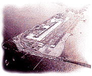 built on an artificial island about 5 km offshore from Osaka -- the most