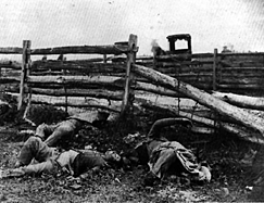 The first significant occasion on which this occurred was in September 1862, after the massive battle at Antietam Creek, near Sharpsburg, Maryland. The photographers, Alexander Gardner and James Gibson, were able to reach the battlefield not long after the fighting ended (possibly even before), and to make seventy photographs within five days, all but eight of them in stereo format--the least expensive and most popular type of photograph.39 Nearly a third of the photographs show corpses.