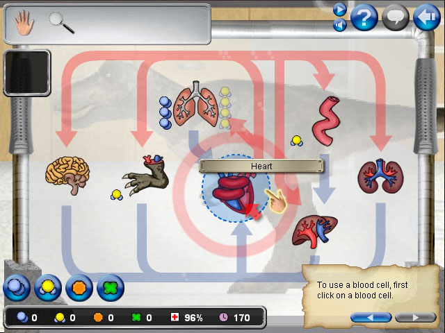 - Keep the baby T-Rex healthy by sending blood cells to the proper organs