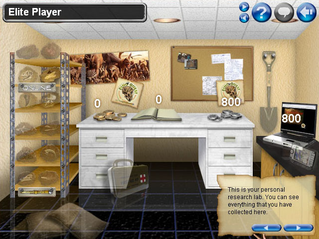 - Personal research space where all rewards from on-site and online games are displayed