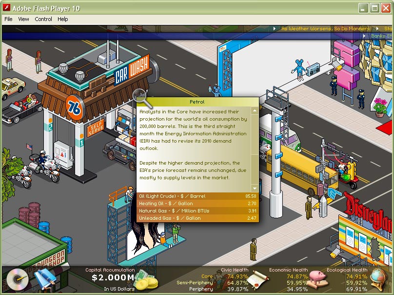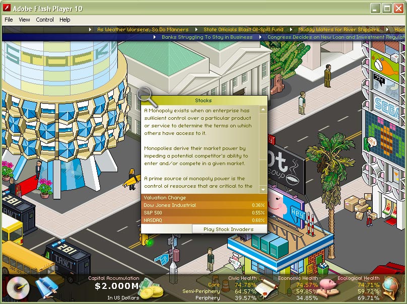 - Player (mis)manages capital over time in effort to balance civic, economic, and ecological health