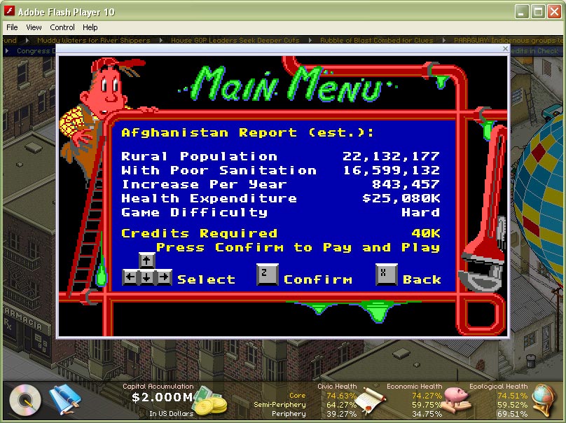 - Game difficulty and object attributes scale in relation to country population, migration, and sanitation data